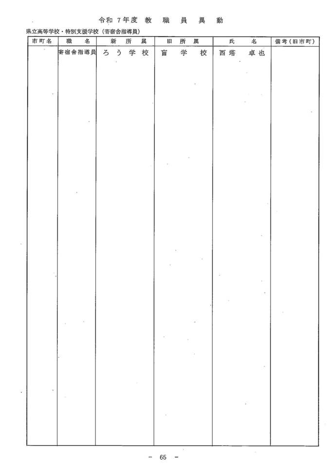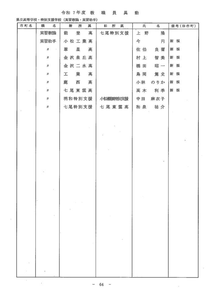 教職員人事異動2025 石川県 「あの先生はどこに?」全名簿掲載・令和7年度…小学校・中学校・高校・特別支援学校 北陸放送 2025年3月24日(月) 14:00 国内 異動する教職員一覧【県立高等学校・特別支援学校 養護教諭,実習教諭・実習助手,寄宿舎指導員】 県立高等学校・特別支援学校 養護教諭 県立高等学校・特別支援学校 実習教諭・実習助手 県立高等学校・特別支援学校 寄宿舎指導員
