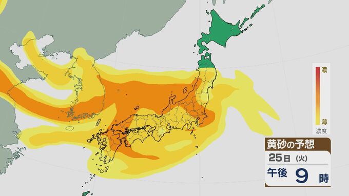 【黄砂情報】25日は西日本から次第に黄砂が飛来 日中には関東にも達する見込み 交通障害などに注意を 最新のシミュレーション 北陸放送 2025年3月24日(月) 09:49 国内 25日の日中は、九州から関東にかけては飛来する量が多くなる見込みです。 25日の夜にかけては東北にも黄砂が達しそうです。 26日(水)は、量は減るものの引き続き九州から東北にかけて黄砂の飛来が見込まれています。