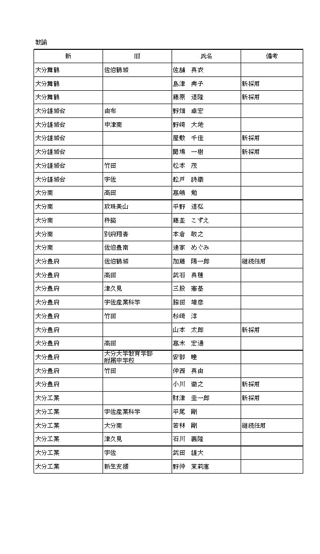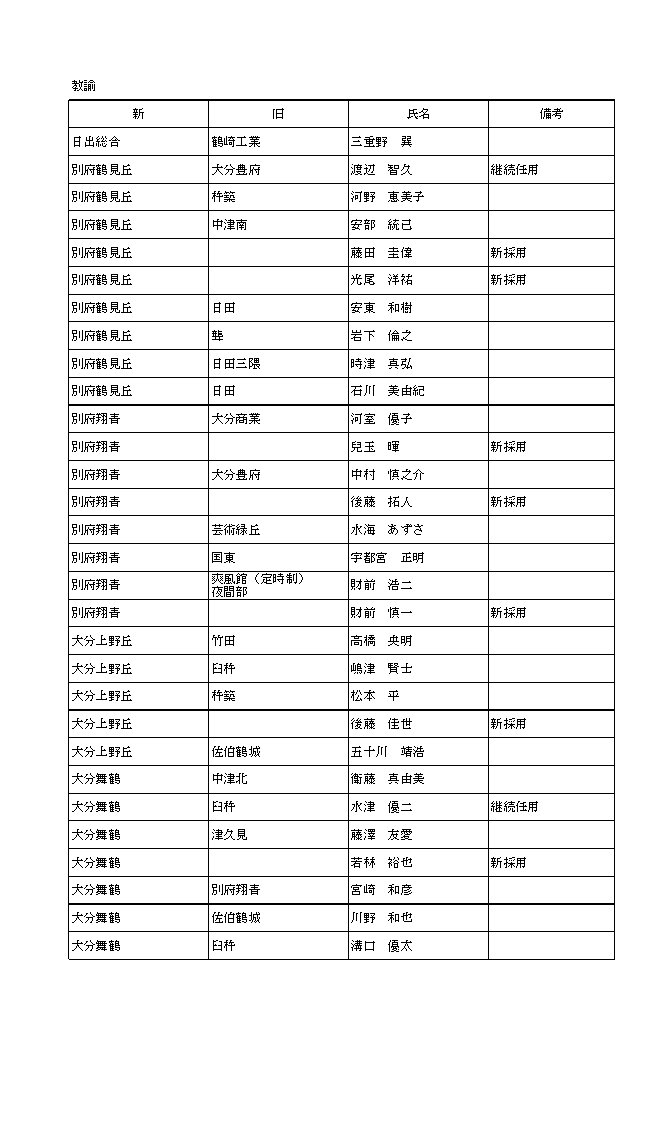 3. 大分県教職員人事異動2025「あの先生、かわるん?」県立中学・高校・特別支援学校の一般職員【異動職員名簿掲載】