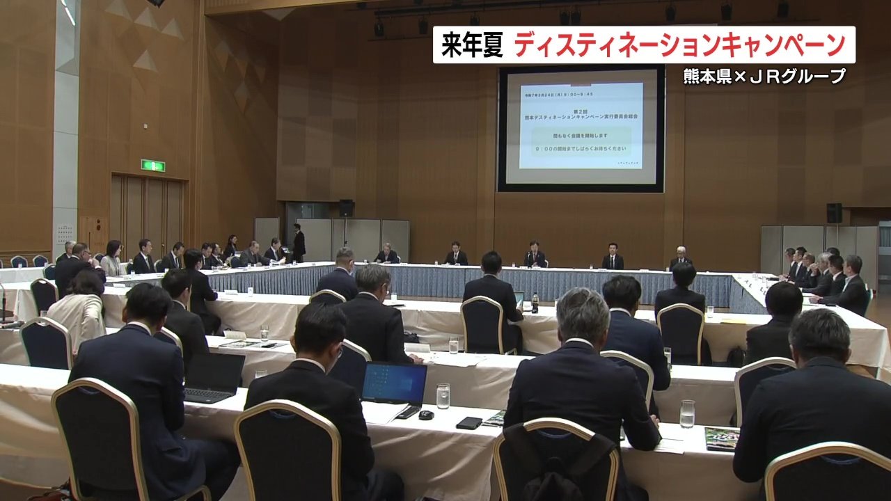 2026年夏に熊本県とJRグループが実施する大型観光キャンペーンに向けた会議が開かれ、ロゴマークなどが披露されました。
