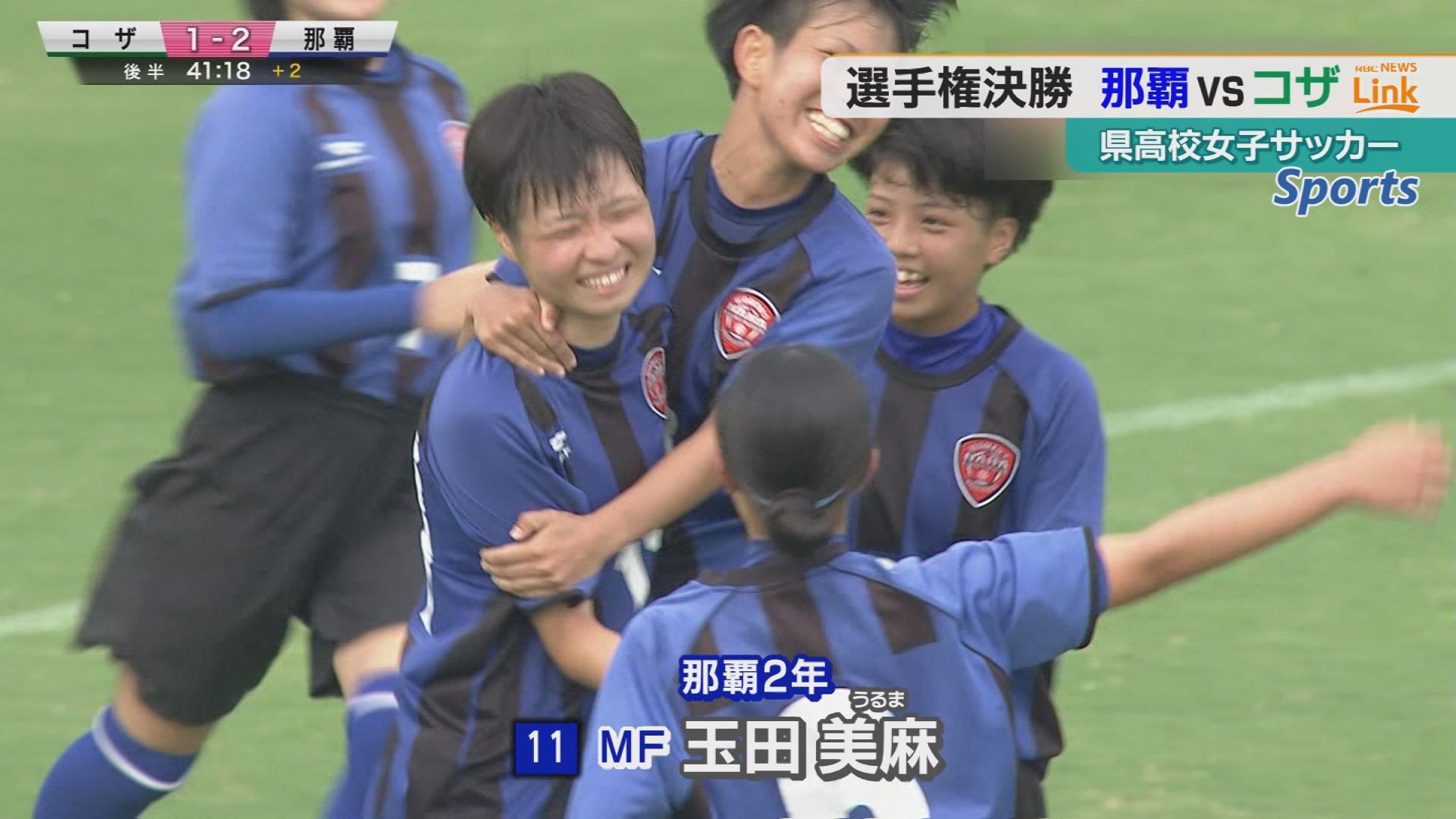 ディフェンス3人に囲まれながらも、右足を振りぬいた玉田美麻のシュートをキーパーがキープできず、これが劇的勝ち越し弾にとなり、2-1でコザを破り、見事選手権初優勝です。