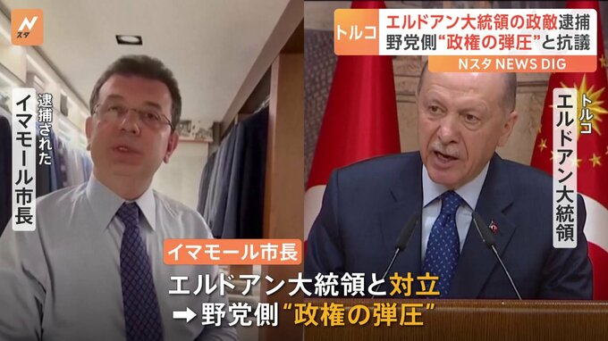 トルコでは、次の大統領選を目指す最大野党の候補が汚職の容疑で逮捕され、抗議デモが激化しています。警察がデモ参加者に向け、催涙スプレーを噴射しています。トルコの捜査当局は、これまで拘束していたイスタン…