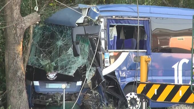 この事故はおととい午後8時半ごろ、三重県御浜町の国道で大型バスが道路脇の防風林に突っ込み、運転手の男性(57)が死亡し、乗客21人全員がけがをしたものです。