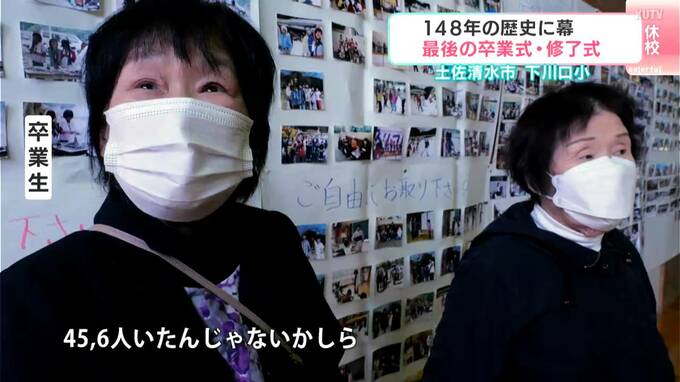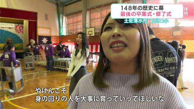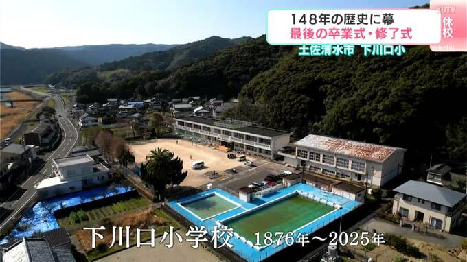 高知県内ではこの春4つの小学校がその歴史に幕を下ろします。そのうち土佐清水市の下川口小学校では最後の卒業式と修了式、そして休校記念式が行われました。地元住民や県外にいる卒業生たちも学校に集い、思い出が詰まった学び舎に別れを告げました。