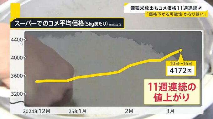「価格が下がる可能性、かなり低い」備蓄米放出もコメ価格は11週連続上昇