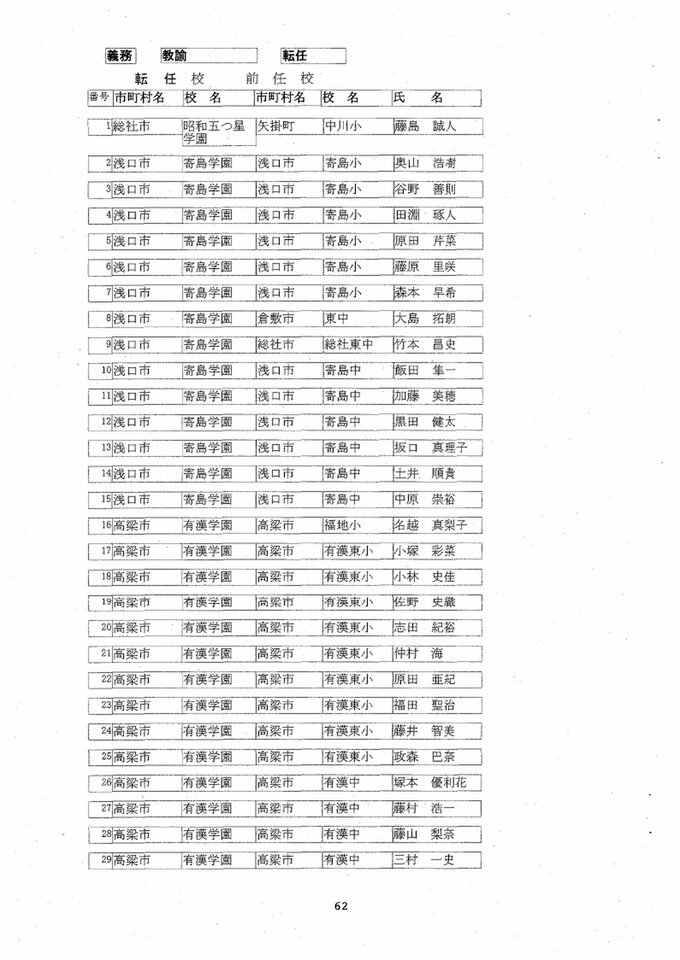 義務教育学校の教諭は、以下の通りです(敬称略)。