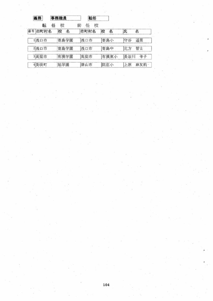 義務教育学校の養護教諭・栄養教諭・事務職員は、以下の通りです(敬称略)。