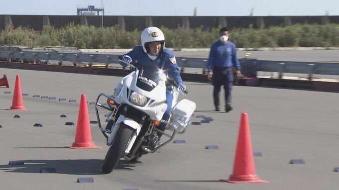 迎えた大会当日。全国の警察から選抜された147人の白バイ隊員が集結。スピードや運転技術を競いました。清水巡査長が最初に挑むのは、「バランス走行操縦」です。ライバルたちがミスなく続々とゴール。順番を待つ清水巡査長は緊張の面持ちです。