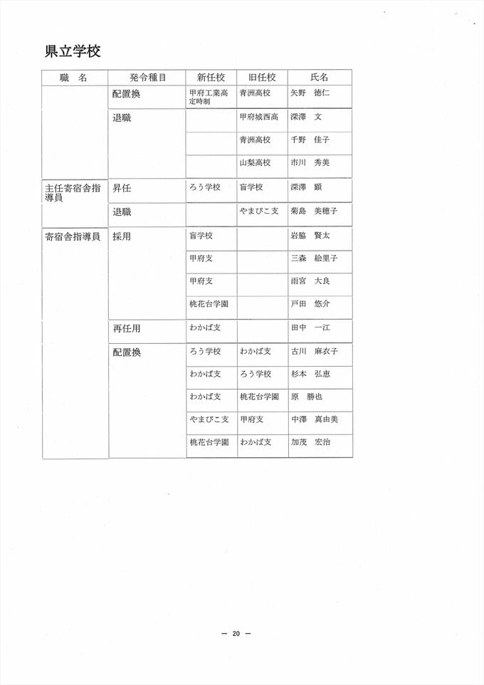 山梨県教職員人事異動2025 あの先生はどこへ?【県立学校(高校・特別支援学校) 異動全名簿掲載】 テレビ山梨 2025年3月25日(火) 15:00 国内 教諭(交流による退職)・養護教諭・実習助手・寄宿舎指導員
