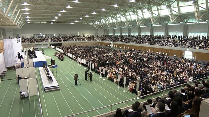 卒業を迎えたのは、大学と大学院合わせて3170人です。各学部の代表に那須保友学長から学位記が手渡されました。