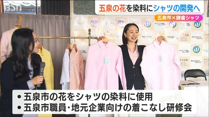 【田辺正幸 五泉市長】「愛でた花が一瞬で終わってしまうというところが、はかなさがあって、それを例えば鎌倉シャツの染料に使っていただいて五泉のぬくもり温かみを感じてもらえれば」