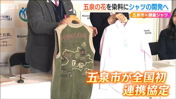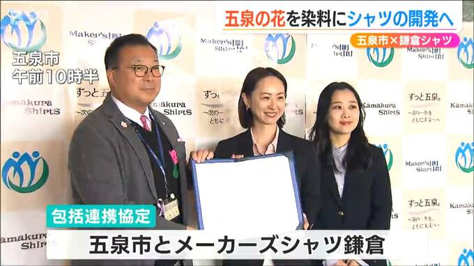 「花のまち」で知られる五泉市と神奈川県鎌倉市のシャツ専門店が連携協定を結びました。五泉の花を染料にしたシャツの開発などを行っていきます。