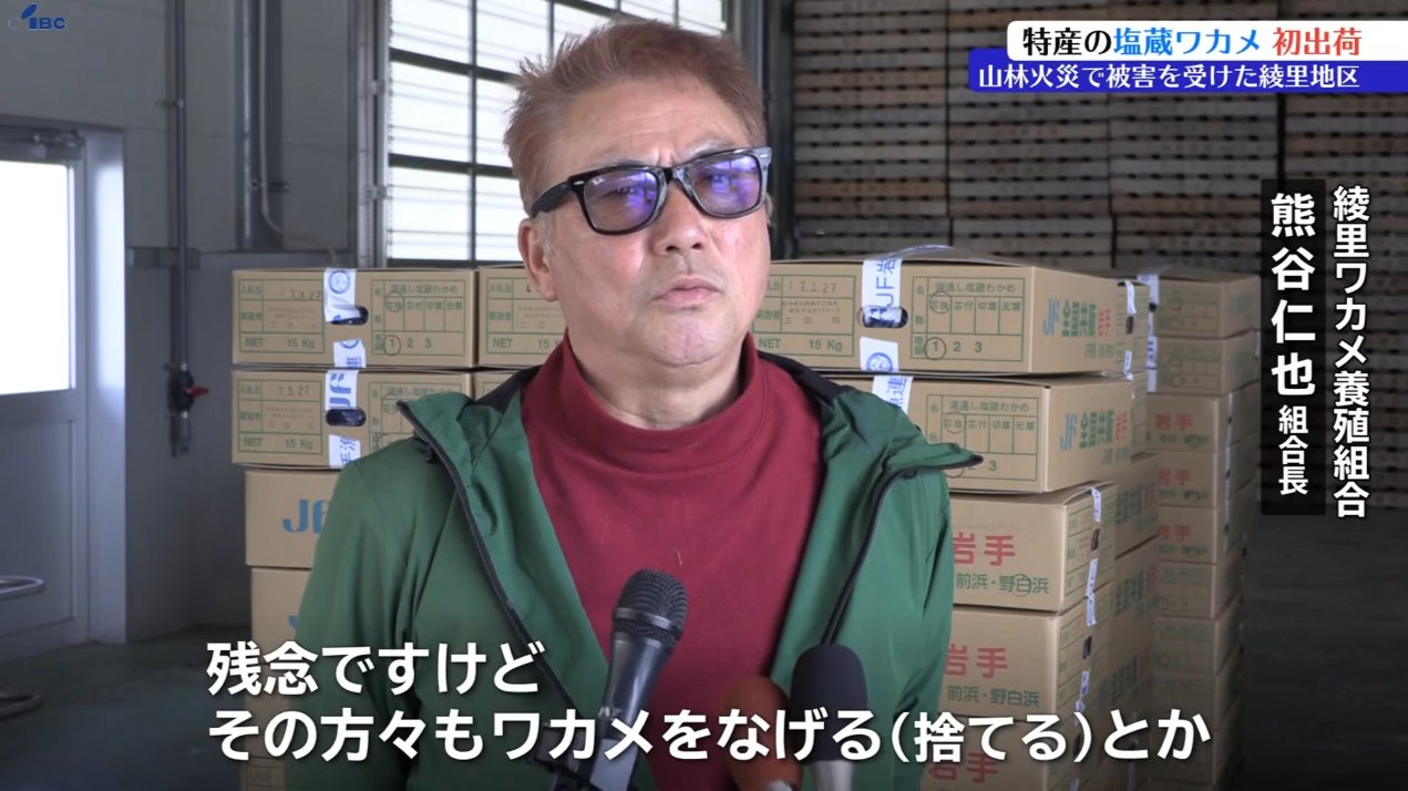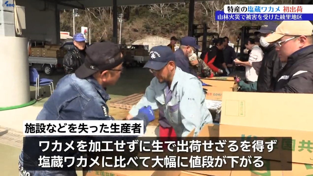 岩手県大船渡市の大規模山林火災で被害を受けた三陸町綾里地区で、特産の塩蔵ワカメが2025年の初出荷を迎え、浜に活気が戻りました。