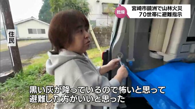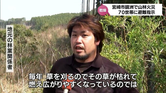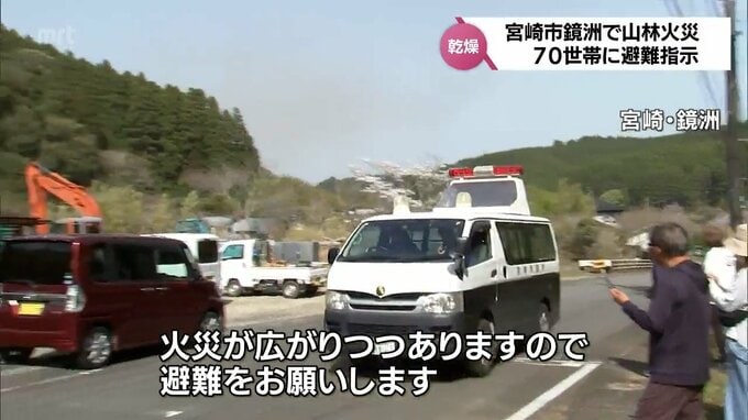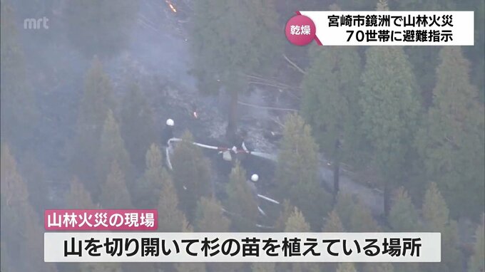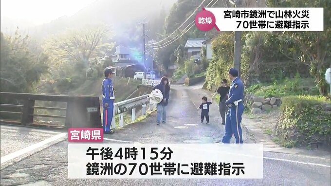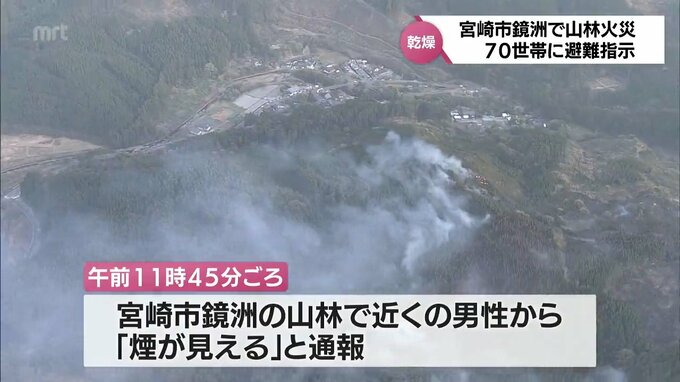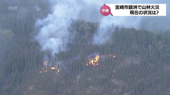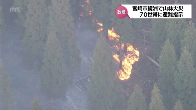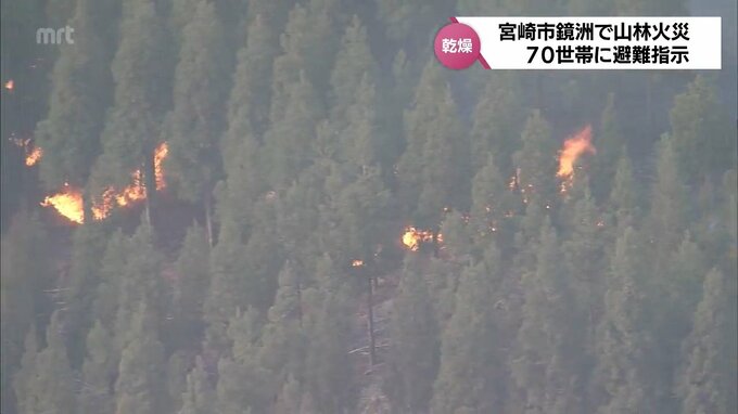 宮崎市鏡洲で山林火災が発生し、現在も消火活動が続いています。宮崎市は鏡洲の70世帯に避難指示を出しました。(25日午後6時15分現在)