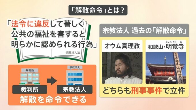 これまで国が法令違反を根拠に解散命令を請求した例は2つあります。