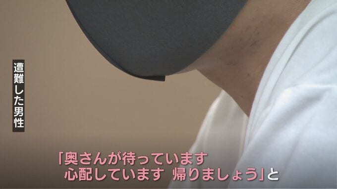 「3回ほど救助されている夢を見ていて、どうせこれも夢だろうと途中まで思っていて、ボランティアの方の1人が『奥さんが待っています。心配してます。帰りましょう』と言っていただいて、夢じゃないんだなって」