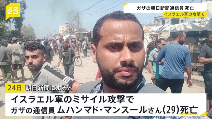 朝日新聞によりますと、パレスチナ自治区ガザの通信員だったムハンマド・マンスールさん(29)がイスラエル軍のミサイル攻撃で死亡しました。マンスールさんは、おととし10月から朝日新聞の通信員として活動し、ガ…