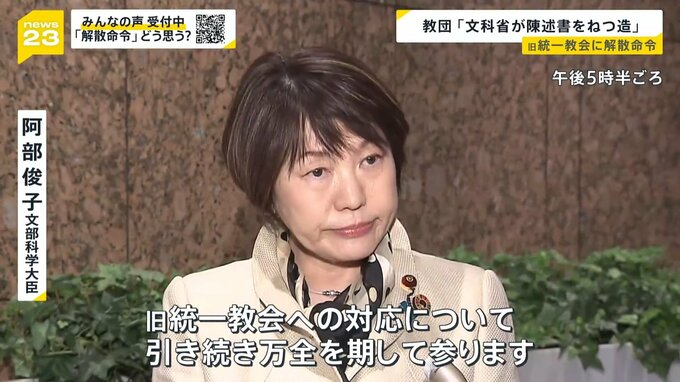 解散命令を受け、阿部文部科学大臣は次のようにコメントしました。