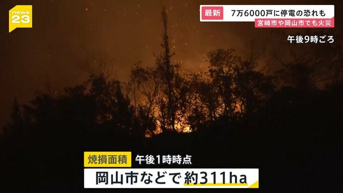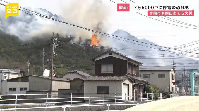 7万6000戸に停電の恐れも 宮崎市や岡山市でも火災