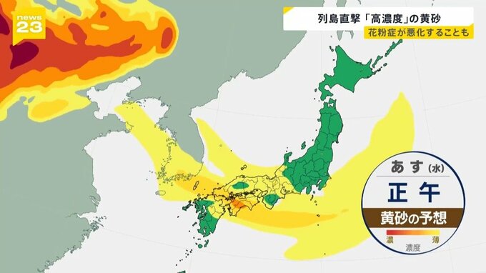 「濃度の濃い」黄砂は、26日も各地に飛来する見通しで、東日本から西日本にかけて注意が必要です。