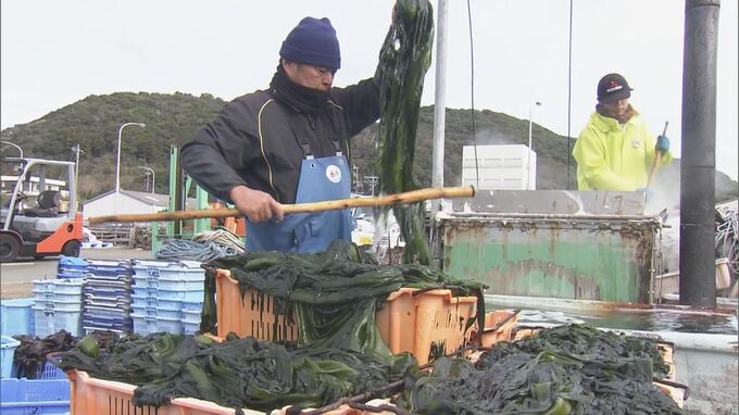ことしは海水の冷え込みが遅かったため、刈り取りが例年より2週間ほど遅れたものの柔らかくて質の良いワカメが採れているということです。