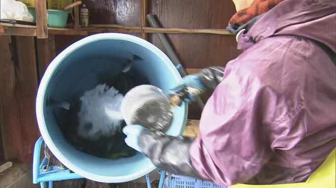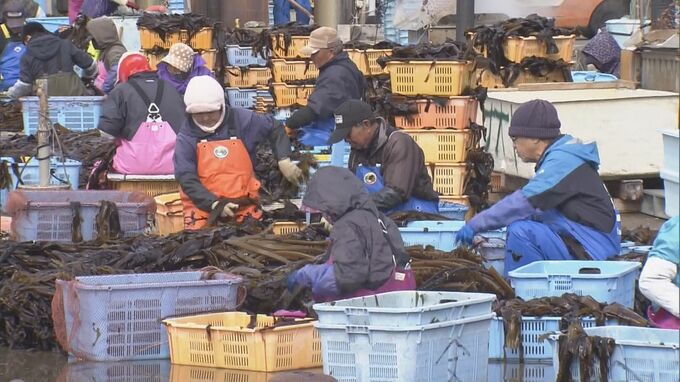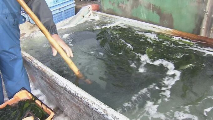 答志島で養殖ワカメの刈り取りが最盛期 根や茎を取り除いて保存用の「塩蔵わかめ」に 三重・鳥羽市