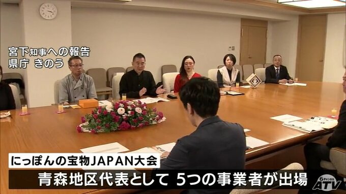 地方の隠れた逸品を掘り起こし、魅力を競う大会に青森地区代表として出場した5つの事業者が宮下宗一郎知事を訪ね、グランプリ獲得などを報告しました。宮下知事を訪ねたのは、2月、東京都で行われた「にっぽんの宝…