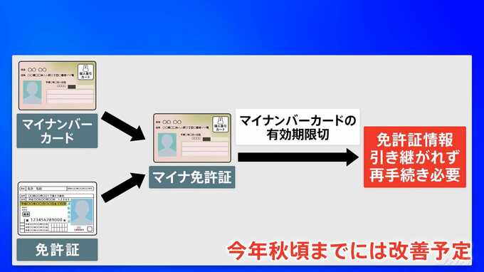 一方 現状のシステムではマイナ免許証を取得後にマイナンバーカードの有効期限がきて更新した場合免許証と一体化させる手続きを再度やり直す必要があることが課題となっていて警察庁は、今年秋ごろまでにはシステムを改善するとしています。