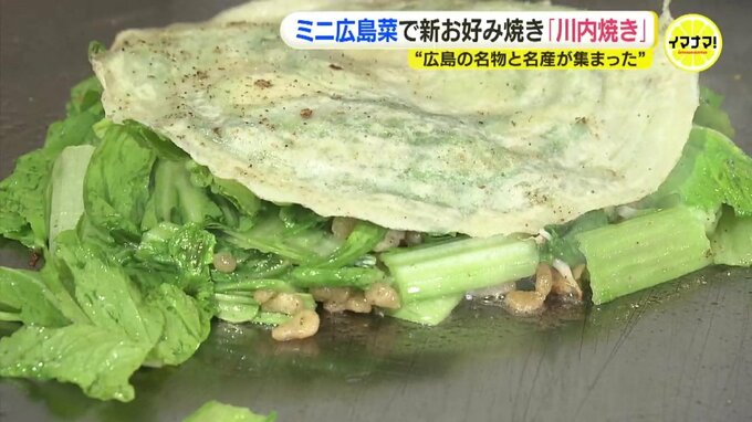 広島の特産・広島菜を、若いうちに収穫した「ミニ広島菜」。このミニ広島菜を、キャベツの代わりに入れたお好み焼きが、広島菜の産地に登場しました。その名も「川内焼き」。広島の新たな名物となるのでしょうか?