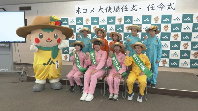 この活動は、JAあいち三河が地元産のコメの消費拡大に繋げたいと2年前から始まりました。3代目となる「米コメ大使」に就任したのは、岡崎市と幸田町の小学校に通う現在、4年生と5年生の5人です。