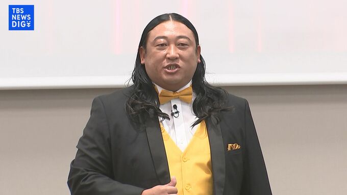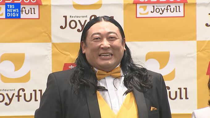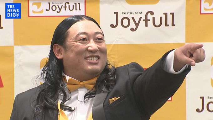 お笑いトリオ・ロバートの秋山竜次さんがファミリーレストラン、ジョイフル「2025年春夏の新グランドメニュー&新TV-CM大発表会」に出席。秋山さんは、黒いスーツに黄色のベストを合わせ、“ジョイフルカラー“で登場しました。