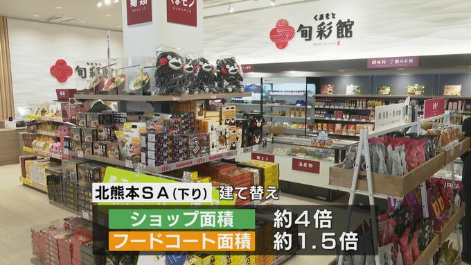 九州自動車道下り線の「北熊本サービスエリア」で27日のリニューアルを前に内覧会が開かれました。2022年11月から建て替え工事を進めていた九州道下り線の北熊本サービスエリアは、以前と比べてショップの面積は約…