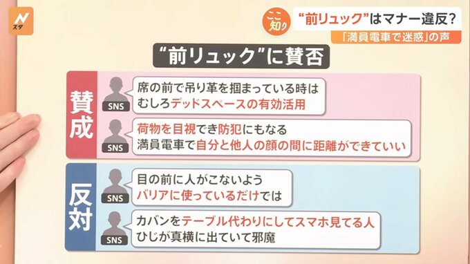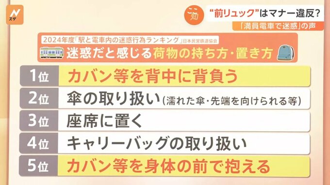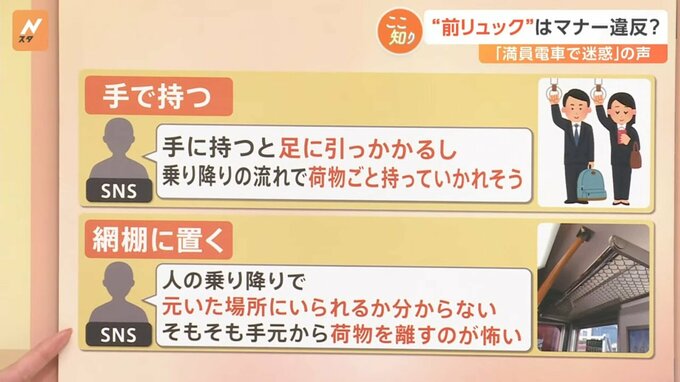 “前リュック”はマナー違反?「満員電車で迷惑」の声