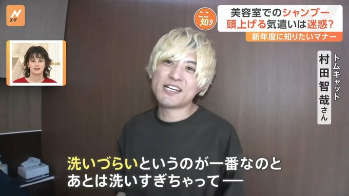 トム キャット 村田さん「そこまで(頭を)上げなくても襟足はしっかり洗えるので、気を遣わないで力を抜いてもらいたいです」