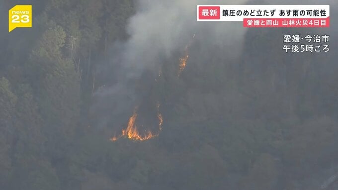 依然として広い範囲で白煙が上がり続けています。山肌には、燃え上がる炎も。愛媛県今治市の山林火災は、発生から4日目を迎えました。