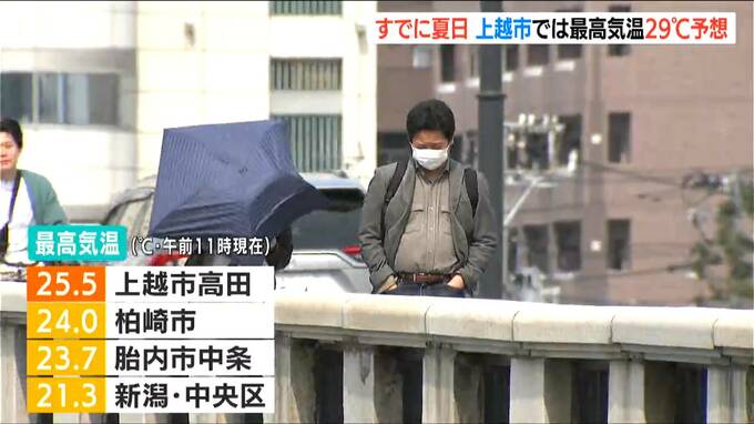 午前11時までの最高気温は上越市 高田で25.5℃、柏崎市で24℃など、すでに夏日となっているところもあります。