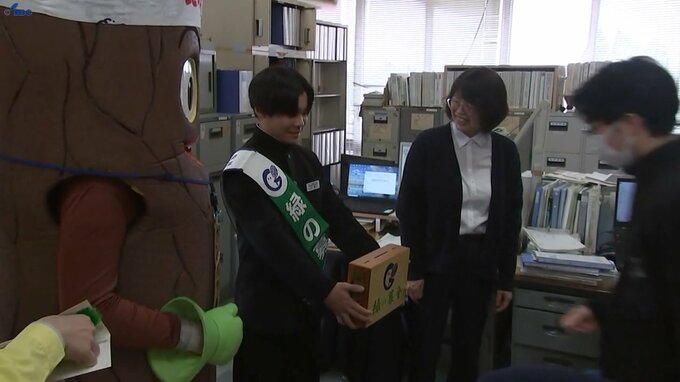 岩手県内では20日に豊かな森づくりを目指す春の緑の募金運動が始まりました。その活動の一貫として岩手県庁で中学生が募金活動を行いました。県庁で募金活動を行ったのは、盛岡市の下橋中学校の生徒6人です。(下…