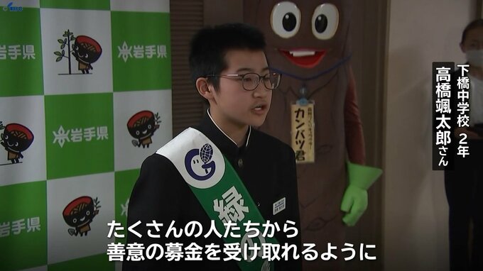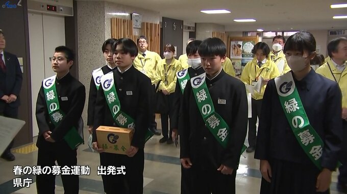 岩手県内では20日に豊かな森づくりを目指す春の緑の募金運動が始まりました。その活動の一貫として岩手県庁で中学生が募金活動を行いました。