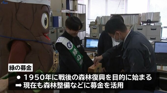 緑の募金は1950年に戦後の森林の復興を目的に始まったもので、現在も森林整備や植樹祭の開催費用に募金が活用されます。