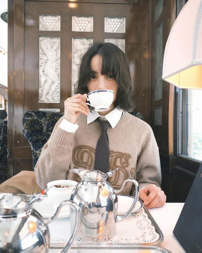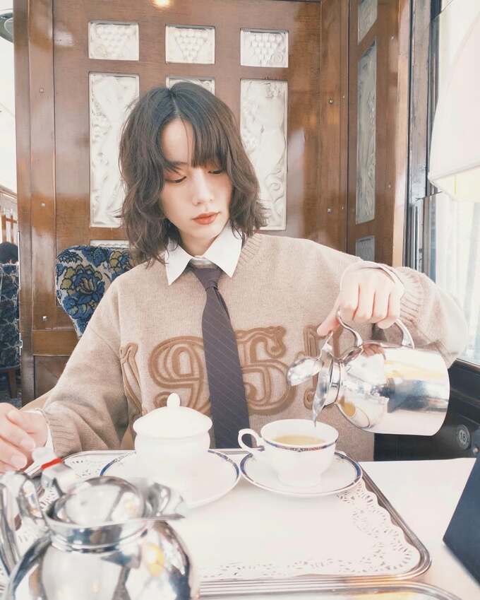 俳優・アーティストの、のんさんが自身のインスタグラムを更新。オリエント急行の車両でティータイムを過ごしたことを報告しました。