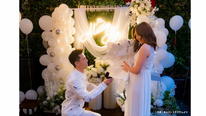 この日、大堀さんはユーシンさんのSNSを共有する形で投稿。ユーシンは「彼女はイエスと言った。これを世界と共有でき、この上なく幸せです」とプロポーズの様子と、大堀さんのウェディングドレス姿の写真を掲載した。そして最後に「私たちの永遠は今日から始まります」とつづった。