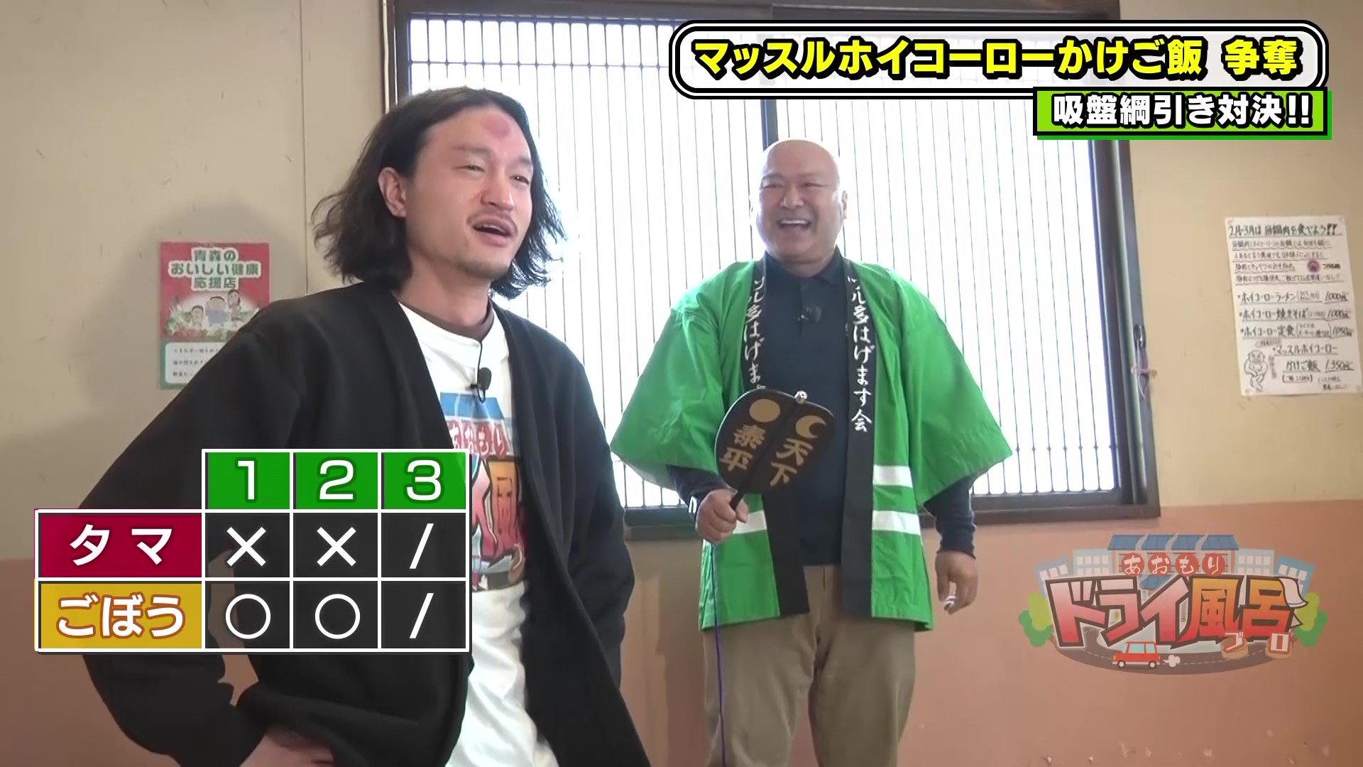 ということで、今回は『マッスルホイコーローかけご飯争奪 吸盤綱引き対決』と題して、タマさんとごぼうさんがバトル!