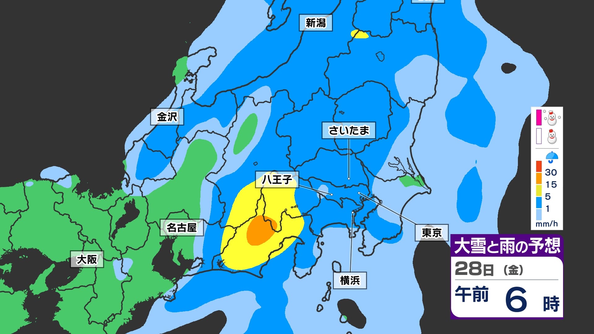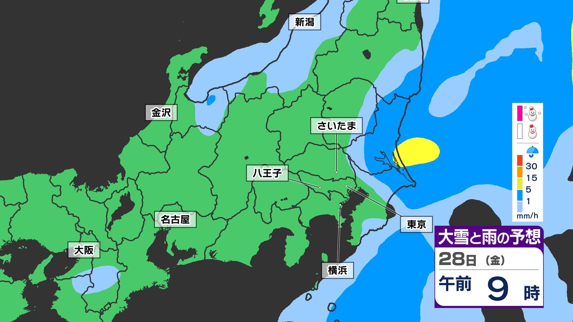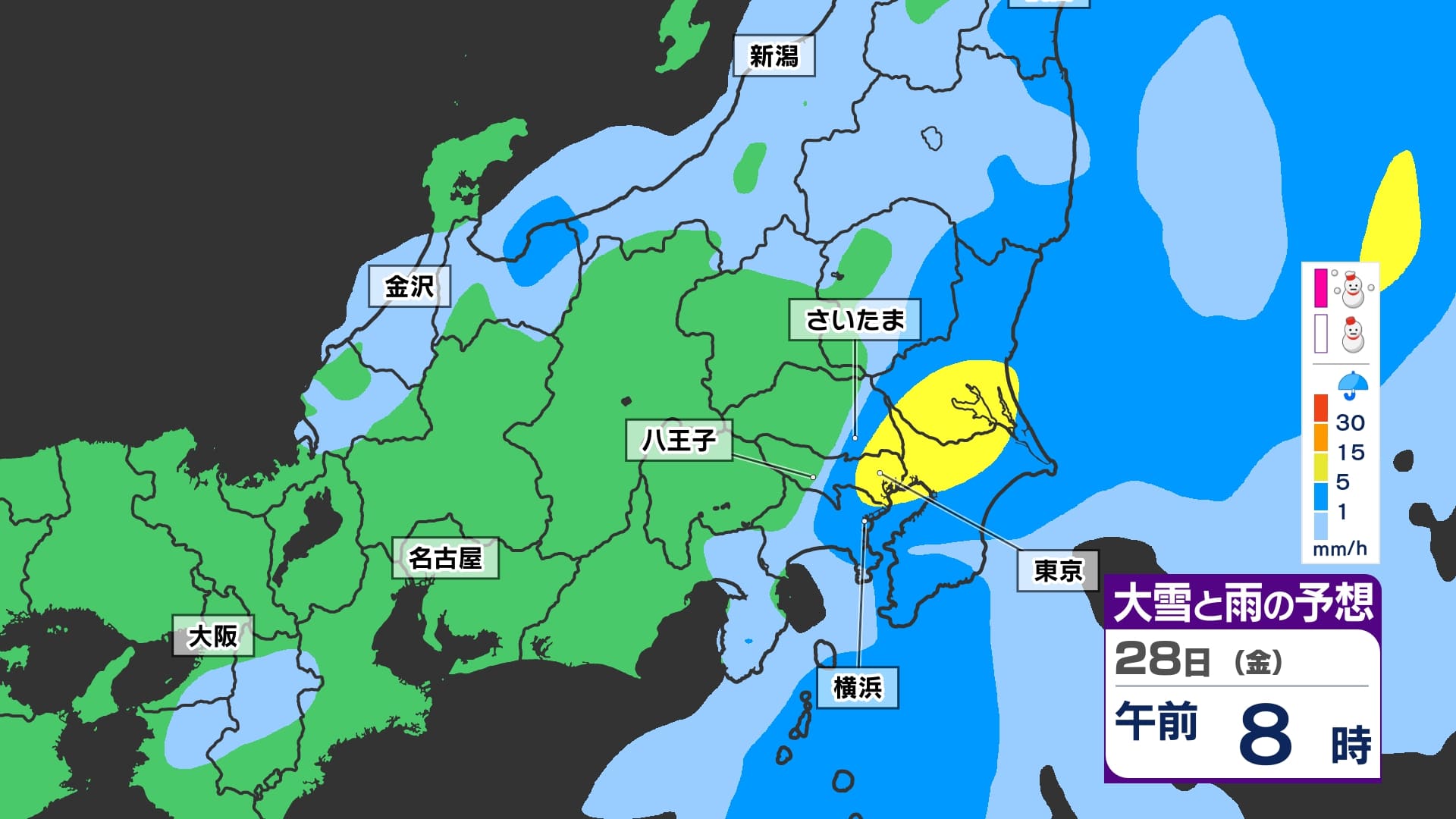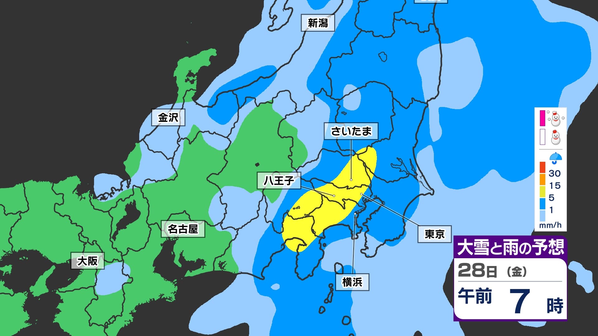 【東京 横浜 さいたま 首都圏】あす朝大雨 初夏の陽気 から 真冬へ逆戻り<寒の戻り”すぎ”>雪が降る所も【大雨はいつ? 雪はどこで?】雨と雪のシミュレーション28日(金)~30日(日) 南日本放送 2025年3月27日(木) 20:00 国内 天気 雨と雪のシミュレーション28日(金)~30日(土) 28日(金)朝は〈本降りの雨〉です、時間に余裕を持って家を出ましょう。 29日(土)30日(日)は〈雨〉が〈雪〉に変わる所がありそうです。多摩地区にも雪が予想されています。画像で確認できます。 「赤」は「大雪」、「白」は「雪」、「青」「黄」は雨の予想