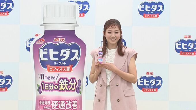 元AAAの伊藤千晃さんが、「ビヒダス ヨーグルト 便通改善 1日分の鉄分」新商品発表会に登壇しました。