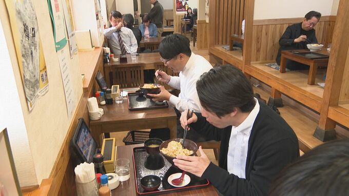 (来店客)「シンプルに多いということで、味ももちろんおいしいです」「卵とカツが合わさっていてとても熱々でおいしいです」