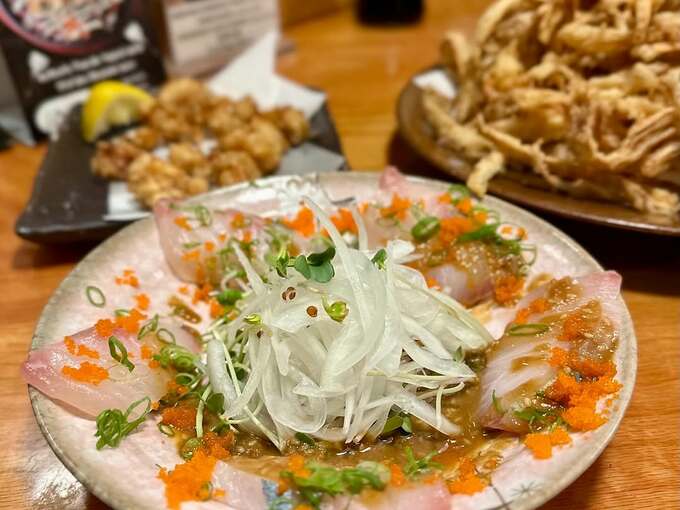続けて、「と言う事で、あれこれ頼みました!これ、バクダンといいますが、めちゃうま。次も絶対頼むはず!」と料理の写真を添えて紹介しました。