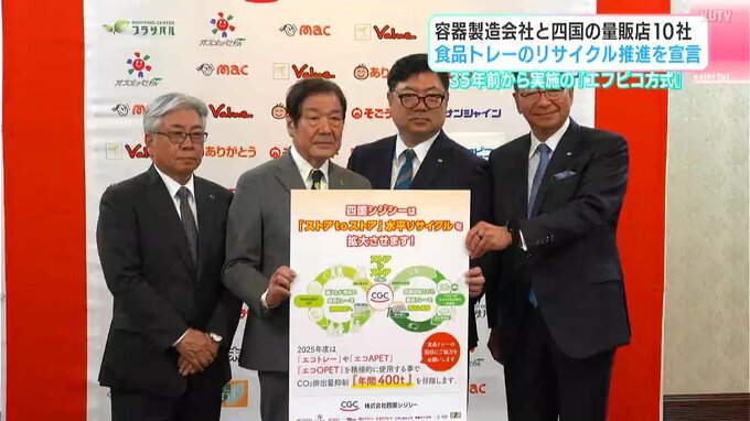 量販店で回収される食品トレーなどを積極的に再利用して資源の循環につなげようと、食品容器製造会社と四国の量販店10社が協働宣言を交わしました。協働宣言を交わしたのは広島の大手食品容器製造会社「エフピコ」…