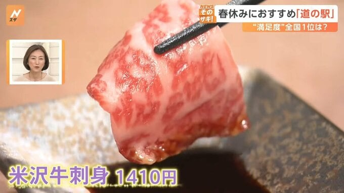さらに米沢牛を堪能できるレストランなども併設されていて、「米沢牛刺身(1410円)」などが、ご当地価格で味わうことができます。地元の魅力を前面に押し出した道の駅です。