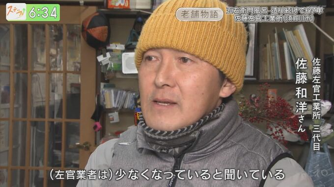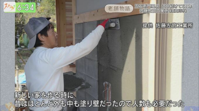 --佐藤和洋さん(佐藤左官工業所3代目)「(不安は)ないって言ったら嘘になりますけれども、左官の仕事も実際なくなっていく方向に今だんだんなってきている。まぁ、そういう不安もありますが、逆に言うと、少なくなっているので、きちっとしたことをやっていけば、なんとか食べていけるんじゃないかと思います。」