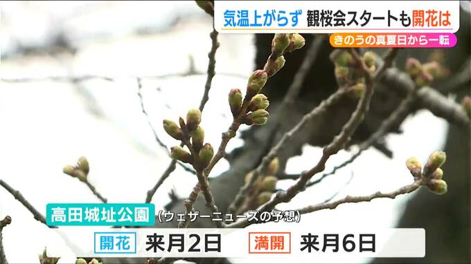 ウェザーニューズは、高田の桜は来月2日に開花すると予想しています。